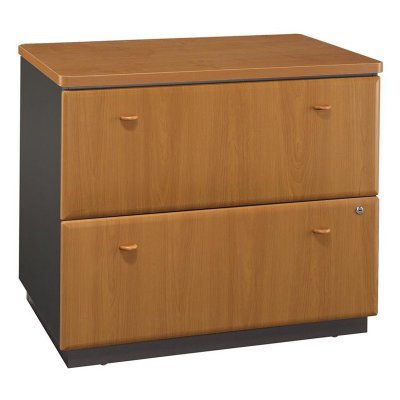 Shop for File and Storage Cabinets from FilingCabinets.com! The Bush - Series A 2-Drawer Lateral Filing Cabinet - Natural Cherry creates plenty of storage with two spacious drawers and an expansive shelf. Two wide drawers hold letter legal and A4-sized files and they glide smoothly on ball bearing extensions. Gang locking keeps both drawers secure with one turn of a key. This cabinet is exactly what you need to enjoy an organized great looking office.You will have the opportunity to purchase matching furniture accessories once you have placed the cabinet in your shopping cart.About Bush FurnitureBush Furniture is the eighth largest furniture company in the United States. Bush manufactures high-quality products which are designed to be easily assembled and provide great value for the price. Bush furniture is made from a combination of particleboard fiberboard and solid wood components. The use of real wood components will be noted in the product description if applicable.Bush Industries has over 4 000 000 total square feet of manufacturing warehousing and distribution space. This allows for a very wide selection of high-quality furniture with the ability to ship quickly. All standard residential Bush products carry a generous 6-year warranty. All Bush business furniture including the A series C series and Quantum series is backed by a 10-year warranty from Bush one of the best in the industry.