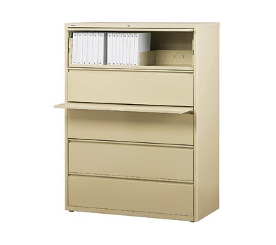 OfficeMax 42inch Wide Lateral File, Five Drawer, Putty Feature